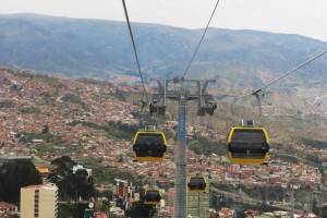 Ja, also das hat mich anfangs zugegebenermassen viel Ueberwindung gekostet: in einen „minibus“ einsteigen. Der minibus ist hier das ueblichste und -wenn man das System dann mal verstanden hat- praktischste Verkehrsmittel. Fast rund um die Uhr fahren etliche dieser eigentlich fuer Lasten gedachte Kleinbusse durch die Strassen von La Paz und halten an jeder Ecke, wenn man nur rechtzeitig ruft: „¡Esquina, por favor!“3. mit der Seilbahn zur Arbeit fahren