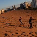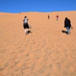 Leider mussten wir feststellen, dass wir einen der Busse genommen hatten, der auf der falschen Seite der Sanddünen hält. Wir hatten also fast unnötig unser Leben riskiert. Um zum Ziel zu kommen, blieb uns wohl nichts anderes übrig als die Dünen zu überqueren. Für Valeria und mich auf jeden Fall viel zu anstrengend. Während der Rest munter die Dünen raufhüpfte mussten wir gelegentlich Verschnaufspausen einlegen. Aber wer macht denn auch Sport vor dem Sport?!