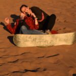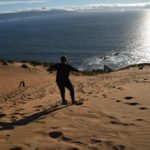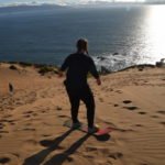 Die Board-Vermietung ließ ich von oben auch viel einfacher ausmachen und wenig später machten wir bereits unsere ersten Sandboarding-Versuche. Ich kann sagen, es macht wahnsinnig Spaß, aber auch nicht ganz ungefährlich ist. Außerdem ist auch wahnsinnig anstrengend das Board und sich immer wieder die Dünen raufzuschleppen und man sicherlich so einige Kalorien verbrennt. Der Sonnenuntergang war trotz einer kleinen Wolkenwand am Horizont schön anzusehen und machte uns auf unsere eindeutig vorhandene Müdigkeit aufmerksam. Dieser concónesische Sand ist wirklich penetrant und auch heute noch habe ich in meinen Schuhen meine eigenen, ganz privaten Sanddünen.