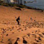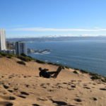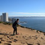 Für den Abend hatten wir uns überlegt nach Concón zu fahren, das nur wenige Kilometer entfernt von Viña an der Küste liegt. Dort gibt es nämlich riesige Sanddünen, wo man für wenig Geld mit einem Board runterdüsen kann. Nach einer halsbrecherischen Fahrt mit einem Micro, waren wir alle froh aussteigen zu können, selbst mein chilenischer Sitznachbar schien sein Ende gesehen zu haben und bekreuzigte sich wie wild. Aber mal ehrlich, dass man in einer Kurve nicht überholt, lernt man ja wohl als kleines Kind und das Ganze macht man schon mal gar nicht, wenn sich rechts eine ziemlich massiv wirkende Felswand und links der Meeresgrund befinden.