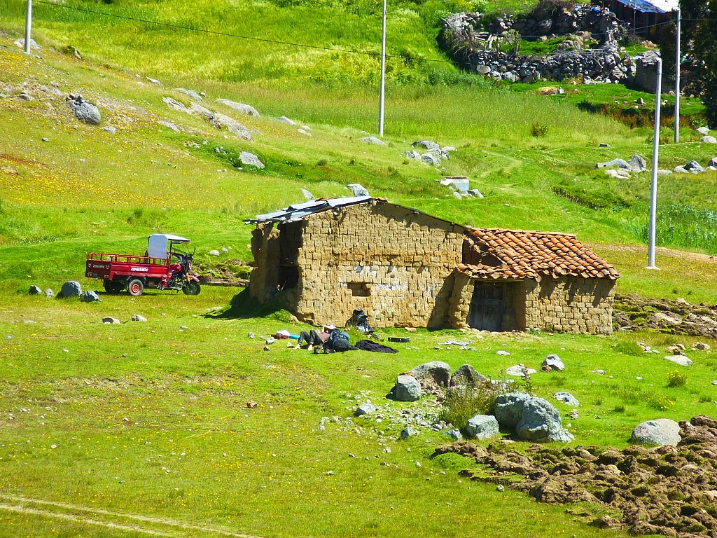 P1040275 26. Mai 2015 1024 × 768 Unterwegs in den Bergen Vor dem alten Lehmhäusschen hat es sich jemand in der Sonne gemütlich gemacht