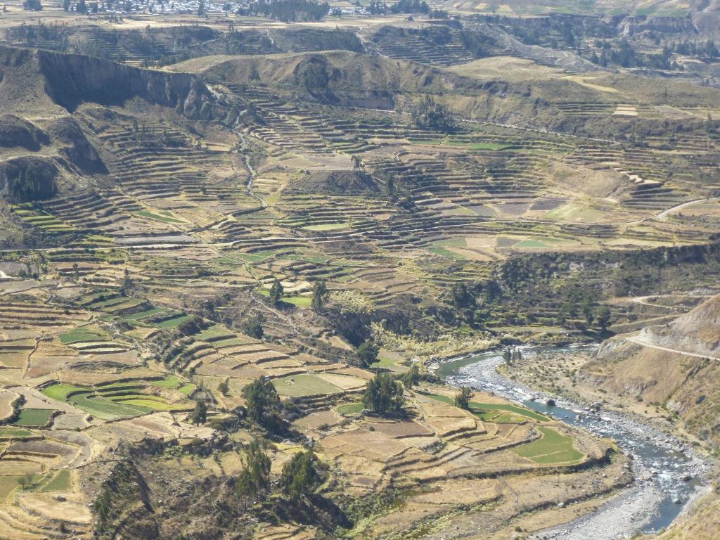 P1050300 15. Juli 2015 1024 × 768 Areqiupa Canyon – hier sind die Terrassen sehr schön zu sehen, die angelegt werden um die Fläche landwirtschaftlich zu nutzen.