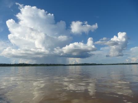 P1050757 8. Dezember 2015 448 × 336 Regenwald Die Wolken türmen sich oft weit nach oben auf. Ab und zu hat es weit weg geregnet. Wir sind nicht von oben nass geworden.