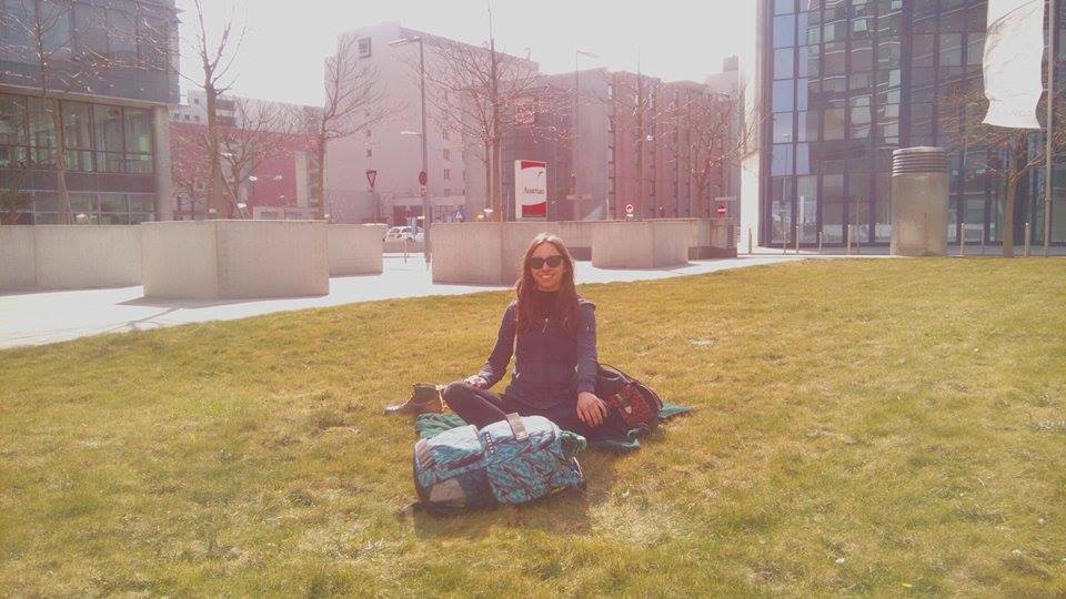 Warten in Wien – kurz bevor wir von der Wiese verjagt werden. Innerhalb von 15 Minuten haben sich 10 Schreibtischtiere beschwert, weil wir mir unserem Hippiegetue die Landschaft stören würden.