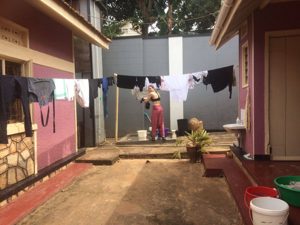 Es ist wirklich sehr sauber hier und ich tue mein Bestes um mitzuhalten. Weil es in Uganda an Waschmaschinen mangelt, muss ich hier meiner Wäsche per Hand waschen und danach sogar bügeln! Das habe ich in Deutschland zwar nie gemacht, ist hier aber durchaus sinnvoll.
