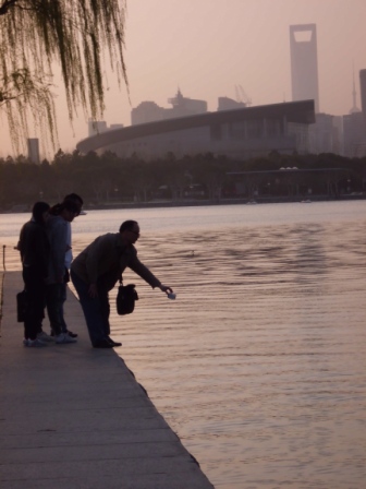 Am Abend merkten wir immer deutlicher den Smog, der uns das Atmen zur Hölle machte. Endlich konnten wir nachvollziehen, warum viele Chinesen ihre Kehlen mit einem sehr widerlichen Geräusch vom Schleim befreien. Das Kratzen verwandelte sich im Laufe des Ostersonntags immer weiter zu Halsschmerzen. Es hielt mir vor Augen, was eventuell im Sommer auf mich zukommen wird. Außer der Wind, der in Shanghai wegen des Meeres die Luft in Bewegung hält, bläßt den Smog fort. Mir hat sich damals und stellt sich seit dem immer öfter die Frage: Was bedeutet eigentlich „lebenswert“ in einer Millionenmetropole – und was ist eine Metropole? In Suzhou hatte ich wirklich nicht das Gefühl in einer großen Stadt zu sein. Die Straßen der Innenstadt waren für mich gemütlich, bis auf die Parks war nichts „überrannt“. Die Größte der Stadt wurde erst deutlich, als wir mit Bus und Taxi lange Fahrten von einem Ende zum anderen Teil der Stadt nutzten – ein Mal sogar 45 Minuten lang (Busfahrten kosten dennoch nur 2 Yuan). Am Karfreitag entdeckte ich sogar einen richtig gemütlichen Ort. Dank Johanna besuchten wir ein Expat-Café/Bar, den „Bookworm“. Aber nicht nur wegen des Namens und der ganzen Bücher fühlte ich mich dort fast zu Hause. Sondern auch der chino-ausländischen Atmosphäre. Neben Foreignern waren eben auch Chinesen vor Ort. Zu meiner Schande muss ich sagen, dass ich große Resentiments hatte, als Johanna und ich plötzlich drei Chinesen an unserem Tisch hatten. Die Herren mittleren Alters fragten uns auf Englisch alles mögliche aus und wir antworteten höflich – dachten aber doch, dass wir vielleicht Signale gesendet hatten, derer wir uns nicht bewusst waren… Am Ende erzählte jedoch ein amerikanischer Freund von Johanna (er selbst lebt schon sehr lang in Suzhou und spricht fließend Chinesisch), dass einfach English Night war: Die Chinesen wollten ihre Sprachkentnisse verbessern! Diese offene Atmosphäre nahm ich außer der „kleinen“ Häuser und Straßen ganz für Suzhou ein. Doch wieder musste ich auch ein Gegenteil kennenlernen: Am Samstagabend trafen wir auf eine Engländerin, die mit ihrem Mann seit fünf Jahren in Suzhou lebte – und gerade so mit dem Taxifahrer kommunzieren konnte, wie sie lachend zugab. Auf die Frage, welche Gärten sie uns denn empfehlen könnte, musste sie uns auch gestehen, dass sie in den ganzen Jahren in keinem einzigen gewesen sei. Mitkommen wöllte sie nicht, als wir ihr anboten mit uns mitzukommen. Nach fünf Jahren könnte sie jetzt auch nicht mehr in einen Garten gehen… Eine Logik, die sich mir nicht erschloss und den Kleingeist dieser weit gereisten Frau auf den Punkt brachte.