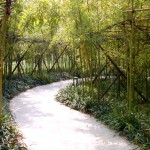 - Ein kleiner Pavillon, zu dem eine Zick-Zack-Brücke führt.