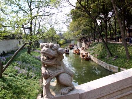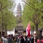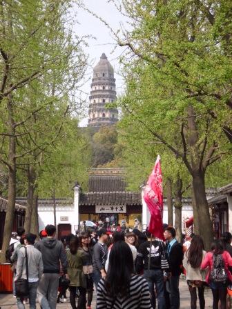In Suzhou angekommen, war ich erst ein Mal erstaunt, weil es doch irgendwie (vom Taxifenster aus) Shanghai sehr ähnelt. Dabei ist die Stadt fünf Mal kleiner als die Megacity am Huang Pu – und mit vier Millionen Einwohnern immer noch so groß wie Berlin. In der District Area leben sogar 10 Millionen Menschen. Suzhou ist in drei Teile gegliedert: SIP (Suzhou Industrial Park), SND (Suzhou New District) und Old Town. Im letzen Teil besteht ein Hochhausverbot, das heißt, die Innenstadt ist in gewisser Weise sehr europäisch. Denn dort Restaurants und Shops sind alle zu ebener Erde betretbar und eher kleine Boutiquen statt riesiger Malls und Kaufhäuser. Zudem wird die Innenstadt von Kanälen durchzogen, die Suzhou den Beinamen „Venedig des Ostens“ gegeben haben. Außerdem wird die Stadt auch der „Garten Chinas“ genannt, weil die Stadt für ihre Parkanlagen und -zum Teil- heiligen Gärten bzw. Tempelanlagen bekannt ist. In zwei dieser Anlagen waren Johanna und ich während des Osterwochenendes: Tiger Hill und Divine Hill. Ersterer ist sehr bekannt, denn die über tausend Jahre alte, siebenstöckige Pagode sieht nicht nur beeindruckend aus, sondern steht schief: wieder eine Referenz nach Italien? Interessanterweise soll unter dieser Pagode ein Schatz voller Schwerter begragen sein – die jedoch nicht geborgen werden können, da die Pagode sonst einstürzen würde. Wu König Helu, der dort beerdigt liegt und dessen Grab von einem weißen Tiger (daher der Name) beschützt werden soll, hat das anscheinend sehr smart gelöst. Der Park war wirklich schön, vor allem auch, weil die Chinesen unglaublich viele Blumenrabatten angelegt haben. Grundsätzlich fand ich die Anlage sehr schön, jedoch war es -wie überall- sehr überlaufen. Ruhe in diesem Park zu finden, war kaum möglich. Und immer wieder musste ich feststellen, welch Attraktion Johanna und ich waren (der arme König Helu!). Am Ende des Ostersamstags waren wir beide blonden Mädchen die Meister im spontanen Gesichtsverzerren, umso denjenigen eins auszuwischen, die ohne zu fragen radikal mit der Kamera auf uns „drauf hielten“.