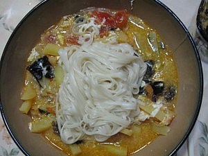 Mittags esse ich entweder in einer Mensa in dem Gebäude, in dem auch das Sprachlernzentrum ist, oder ich kaufe mir etwas an Straßenständen direkt neben der Uni. Zwar wurde mir auch schon gesagt, diese Garküchen seien nicht so gut, weil sie nicht sauber wären, aber bisher bin ich davon noch nicht krank geworden und es ist lecker :). Etwas Vegetarisches zu bekommen ist nicht schwer. Ich frage einfach immer nach, ob das Essen mit Fleisch ist und wenn ja, ob es auch etwas Vegetarisches gibt (was meistens der Fall ist).