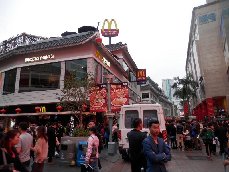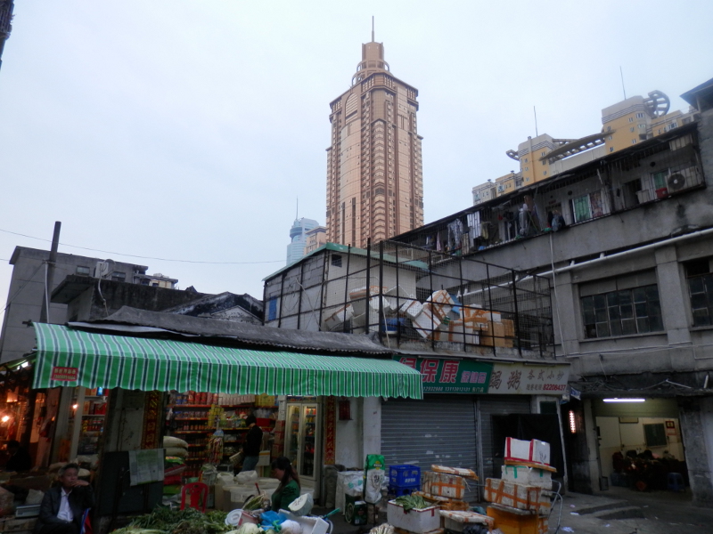 Am nächsten Tag hat Maurice mir ein bisschen seine Stadt gezeigt. Wo es unter anderem den ältesten McDonalds Chinas gibt, einen Tiermarkt (an diesem Tag war der Krokodil-Laden geschlossen, aber es gab auch so genug zu sehen) und das neunt höchste Gebäude der Welt (das zukünftige zweit höchste ist in Bau). Vom neunt höchsten Gebäude ist der Ausblick natürlich super, leider kann man durch die Scheiben aber nicht gut fotografieren. Dafür hat es keinen Eintritt gekostet, weil Flo und Maurice wussten, was man am Eingang sagen muss: „We would like to go to the bar.“. In der Bar sitzen ein paar gelangweilte Menschen, bei teuren Getränken, lauter Musik. Den Blick (es ist wirklich schade um das schöne Shenzhen-bei-Nacht-Panorama) immer schön auf´s eigene Smartphone gerichtet.