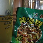 - „Tsingtao-Bier“ mit „Bier-Bohnen“ (eine Art Erdnüsse)