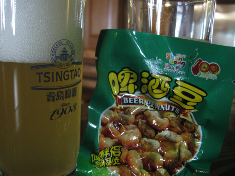 - „Tsingtao-Bier“ mit „Bier-Bohnen“ (eine Art Erdnüsse)