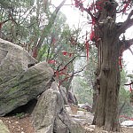 Der „Konfuzius Wald“ (Kǒng lín 孔林) ist ein riesiger Friedhof. Hier liegen Konfuzius selbst sowie viele seiner Nachkommen begraben. Das rote sind eine Art Glückwunschkarten neben dem Grab von Konfuzius (wurde mir jedenfalls erklärt).