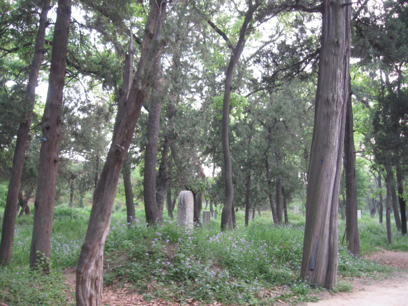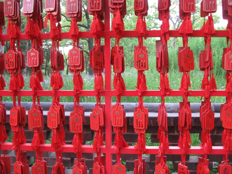 Der „Konfuzius Wald“ (Kǒng lín 孔林) ist ein riesiger Friedhof. Hier liegen Konfuzius selbst sowie viele seiner Nachkommen begraben. Das rote sind eine Art Glückwunschkarten neben dem Grab von Konfuzius (wurde mir jedenfalls erklärt).
