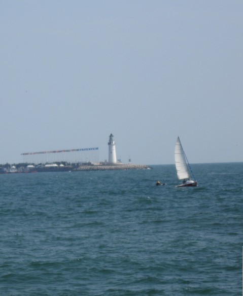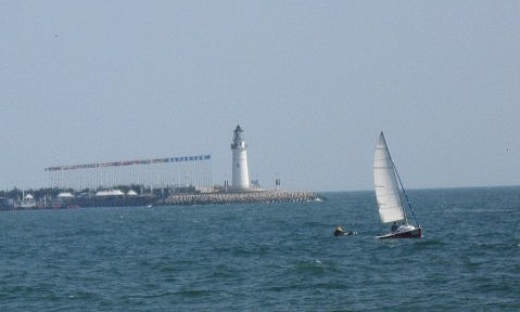 Tintenfisch (Moyu Jiaozi) und gehe dann zur Olympischen Stätte (Aofanjidi), wo 2008 der Segelwettbewerb ausgetragen wurde. Ich flaniere an den Yachten entlang hinunter zum Leuchtturm. Dort angekommen genieße ich die Aussicht auf die blinkenden Wolkenkratzer des neuen Qingdao – und auf das Meer, das ruhig und klar darliegt und noch mehr Geheimnisse verspricht, die ich morgen erkunden kann, in der Stadt am Gelben Meer.