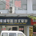 - Meistens fallen mir Übersetzungsfehler nicht so auf, aber das fand ich wirklich lustig: In diesem Laden kann man sich wohl schnell etwas drucken lassen, die Silbe yìn (印) kann „drucken“ heißen, oder im Wort Yìndù (印度) für „Indien“ stehen