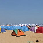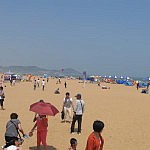 Huangdao gehört auch noch zu Qingdao und hat schöne Landschaft und zwei große Strände zu bieten: Den Silbernen und den Goldenen Strand. Wir sind mit der Fähre auf die Halbinsel gefahren, fast den ganzen Tag am „Goldenen Strand“ (金沙滩) verbracht und schließlich mit dem Bus durch einen Tunnel unter dem Meer zurück. Am Strand war es ganz anders, als ich es aus Deutschland oder Westeuropa kenne. Fast niemand war zum Baden oder Sonnen dort, denn viele Menschen hier können gar nicht schwimmen und wollen auch nicht braun werden. Voll war es trotzdem. Voll Menschen und voll Sonnenschrime und Zelten.