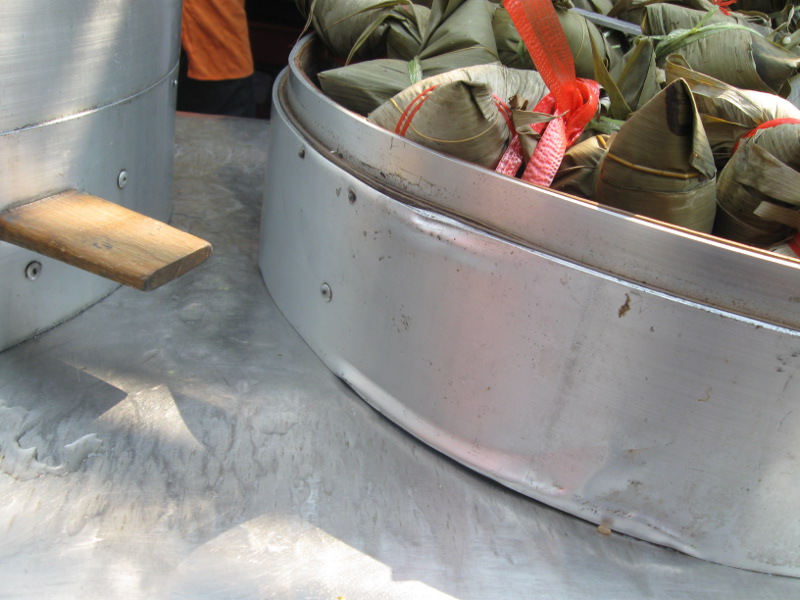 Ach ja, und ich habe „zòng zi“ (粽子) gegessen, die man traditionell an diesem Tag ist. Das ist klebriger, süßer Reis in Blätter gewickelt und zu Dreiecken geschnürt. Es gibt verschiedene Füllungen mit zum Beispiel mit Bohnen, Datteln oder auch Fleisch. Drachenbootrennen gäbe es eigentlich nur in Südchina hab ich mir sagen lassen.