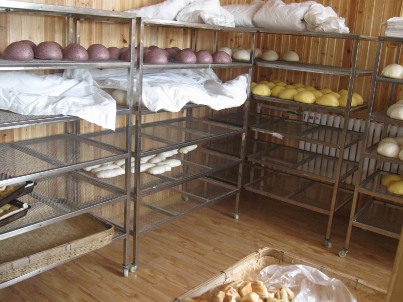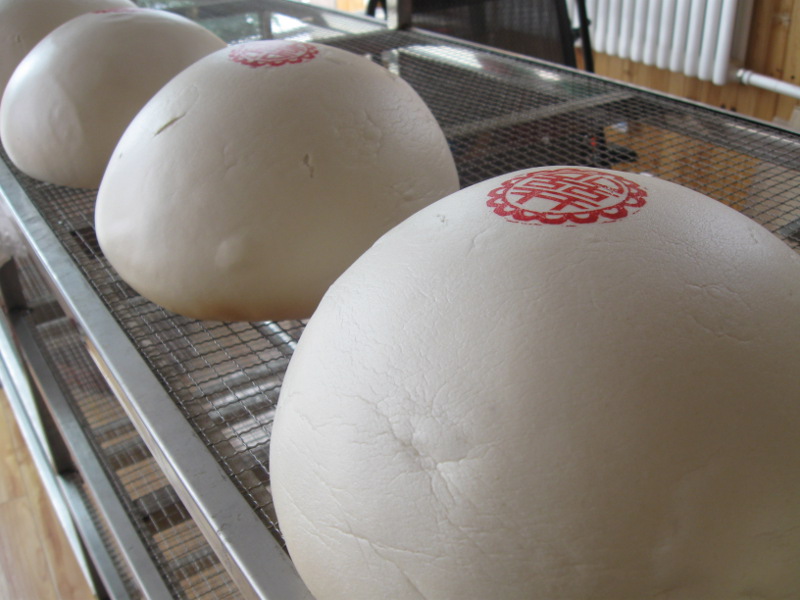 Auf dem Weg sind wir an einem Ort vorbeigekommen, wo es fast nur Läden gab, in denen „Mántou“ (馒头) verkauft wird. Mantou ist ein weiches Brot, das aus Hefeteig hergestellt wird. Es wird gedämpft. Ich glaube, es ist das Brot in China und wird vorallem in Nordchina gegessen, oft ersetzt es Reis beim Essen. Auch wenn es fast gar keinen Geschmack hat, esse ich es mittlerweile sehr gerne. Vielleicht auch, weil ich deutsches Brot vermisse.