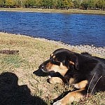 - Hund am Fluss der Kühe