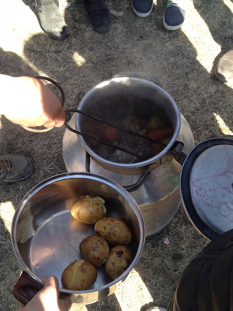 links, das vor besagten drei Wochen entstanden ist, wurde das Fleisch zuvor über Nacht mariniert und beim Garen diverses Gemüse dazu gegeben. Auf dem Sprachcamp erwarteten uns anstelle des Gemüses jedoch vielfältige Schafsinnereien, von Leber über Zunge bis hin zu Blut war alles dabei. Nicht ganz so mein Fall, aber das Fleisch ist immer wieder lecker : )