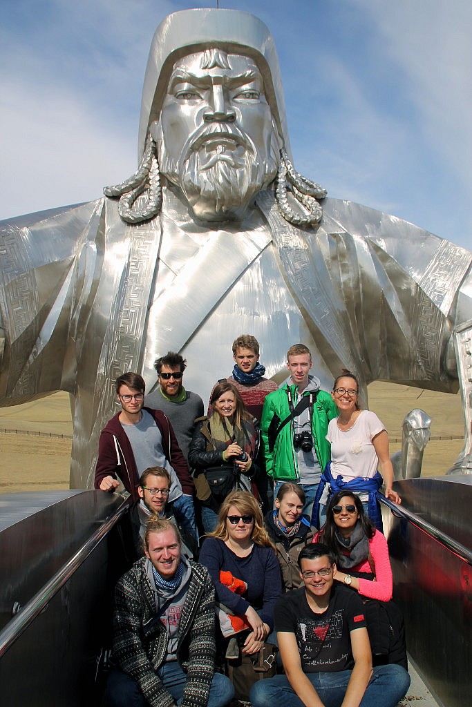 Das Highlight war eindeutig der Tagesausflug am Mittwoch. Ziel war der nahe gelegene Nationalpark Terelj: nach einem ersten Anstandsbesuch bei Chinggis ging es zu einer mongolischen Familie, die für uns Tsuivan (Nudelgericht) und Suutei Tsai (Milchtee) kochten, uns einige ihrer vielen Pferde für einen Ausritt zur Verfügung stellten und uns einen Einblick in den Bau einer Jurte gaben. Danach ging es weiter in den Nationalpark hinein, zum Schildkrötenfelsen und einer alten mongolischen Klosteranlage, die als krönenden Abschluss einen wundervollen Ausblick bereit hielt. Und jetzt lasse ich Bilder für sich sprechen : )