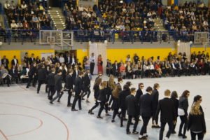 Die Bandweihe ist eine Zeremonie, die den letzten Abschnitt der Schulzeit einläutet. Alle Schüler*innen bekommen eine Brosche mit einem Band, auf dem die Jahreszahlen ihrer Gymnasialzeit stehen. Diese Brosche tragen die meisten sehr stolz an ihrer Jacke, solange bis sie ihre Prüfungen ablegen. Nach der feierlichen Übergabe (die Schüler*innen tragen ihre Uniformen: die Mädchen tragen Matrosenblusen, die Jungs Anzüge) der Broschen, folgen die Tänze. Jede Klasse tanzt zwei Tänze: einen Standardtanz und einen freien Tanz. Am Abschluss tanzen die Kursleiter*innen noch für ihre Schüler*innen. Für den Standardtanz leihen sich die Mädchen Ballkleider aus und mal wieder ist alles sehr pompös- vielleicht ein kleines bisschen mehr Schein als Sein. (Funfact: Da es für die Standardtänze nicht genug Jungs in der 12.Klasse gibt, springen Jungs aus den jüngeren Klassen ein)