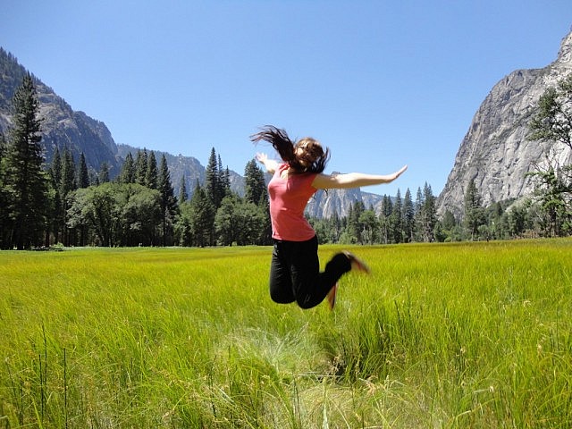 Der Yosemite National Park liegt nur eine kurze Autofahrt von unserem Hotel entfernt, beim Schwimmen im Pool waren wir schon von hohen Bergen umgeben. Der Park ist 3000 km² groß und bietet neben dem Gebirgen, von dem man stets umgeben ist, unglaublich saftige Wiesen in den schönsten Grüntönen. Das Gras wiegt sich sanft im Wind und sieht so weich aus, dass man sich sofort hineinlegen möchten. Kleine Wildblumen in gelb und lila blühen. Außerdem gibt es tiefe Wälder mit den heimischen Bären, vor denen die Wanderer gewarnt werden, wegen derer alle Abfalleimer mit einer speziellen Klappe gesichert sind und die beschützt werden, weshalb überall gelbe Schilder mit dem Text „Speeding kills bears“ an den Straßen stehen. Zwischen den Bergen befinden sich kristallklare Seen und der Merced River fließt mir einigen kleinen Stromschnellen mitten durch den Park.