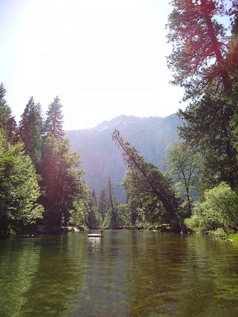 Das Wasser hatte es uns angetan, also beschlossen wir, Rafting auszuprobieren. Das hört sich wilder an als es eigentlich war, denn die Gebirgsbäche führen jetzt im Juli nicht mehr viel Wasser. Aber es machte Spaß und man konnte die Landschaft aus einer anderen Perspektive sehen. Die Berge waren nicht nur einfach grau, sondern besaßen alle Schattierungen von schwarz bis weiß, mit kupferfarbenene Flächen und einigen grünen Farbkleksen, die von Moos und Ähnlichem stammten. Durch das wenige Gebirgswasser waren die Yosemite Falls auch nicht so beeindruckend, wie sie das sicherlich im Mai sind, aber es machte Spaß, auf den Steinen bis an den Wasserfall heranzuklettern.