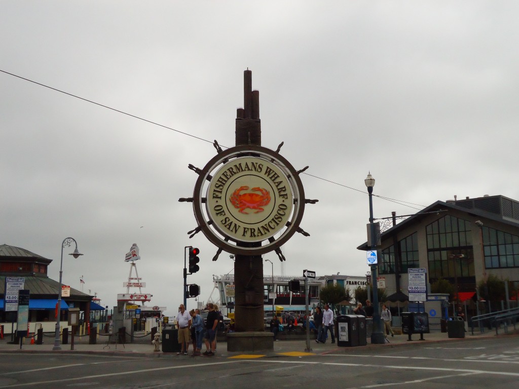 Es sieht am Pier 39 am Fisherman’s Wharf wirklich aus wie im Film mit den vielen Buden mit frischem Seafood, den großen Schildern, auf denen Restaurants angepriesen werden, dem Steurrad mit der großen Krabbe drauf direkt am Ozean udn die Souvenirläden.