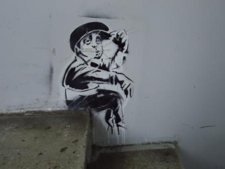 - Wanja, Katja und ich vor einer skurrilen Plastik