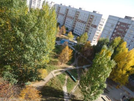 Ich befinde mich nach einem langen, aber eigentlich entspannten Flug von Moskau jetzt in Akademgorodok, der Wissenschaftsvorstadt von Nowosibirsk. Wenn ich aus dem Fenster schaue, blicke ich acht Stockwerke hinunter, in der Ferne sehe ich typisch russische Hochhäuser und Wald, Wald, Wald. Alles ist so grün hier bzw. eigentlich schon eher rot und gelb verfärbt. Mir gefällts. Aus dem Küchenfenster kann ich sogar das Gymnasium, in dem ich arbeite, sehen. Ein blaues Gebäude, sieht typisch nach Schule aus.