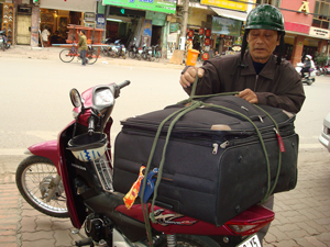 Mein Chef und Person in charge Roland Stumpf ist genauso nett, cool und sympathisch, wie er bei den E-mails und Skype Telefonaten rüberkam. Er hat mir GI (Goethe Institut) Leute organisiert, die mich zu dem Viertel bringen würden, wo ich mir eine Wohnung ausgesucht hatte. Überhaupt reißen die sich hier für mich und meinen Start in Hanoi alle 10 Finger raus, dabei wird von „kulturweit“ nicht verlangt, dass die Organisation dem Frewilligen bei der Wohnungssuche hilft. Minh Trang Vu stand mir eigentlich den ganzen Tag zur Seite. Sie unterrichtet als Vietnamesen deutsch an den PASCH-Schulen und ich werde ihr viel helfen in nächster Zeit. Sie ist jung und total aufmerksam und cool. Als klar war, dass mein deutschsprechender GI Fahrer nicht mehr da war, wurde uns auch klar, dass wir kein Auto mehr hatten. Wie also den 32kg Koffer auf ein Moped kriegen?