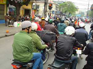 Um 15 Uhr gestern bin ich dann zum GI gefahren und mit einer 11. Klasse zusammen zur Botschaft. Auf Cyclos, der vietnamesischen Variante der Fahrradrischka. Cyclos gibt es in Vietnam schon über 100 Jahre und sind den Franzosen zu verdanken, die sie damals für französische Privatleute aus der Kolonialherrschaft importiert haben. Heute sind Cyclos verboten und nur mit Sondergenehmigung erlaubt.