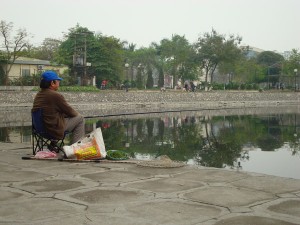 Nach vier Tagen Entzug bin ich dann auch endlich mal zum Sport gegangen. Sport machen (vor allen Dingen mein Laufpensum) wird hier unmöglich umzusetzen sein. In Hanoi wird man faul. Allgemein erinnert mich die Fortbewegungsweise der Hanoians sehr an die der Amis. Jeder Meter wird gefahren und selbst beim Straßeneinkauf steigt man nicht vom Motorrad ab. Im Sommer werden 12- 14 km Läufe als eine Unmöglichkeit definiert. Wenn, dann geht man hier schwimmen. Manche heben auch hin und wieder mal einen Arm. Mehr nicht. Das wars. Im Sommer geht hier wohl generell gar nichts mehr. Man bewegt sich von einer Air conditioning zur Nächsten und dann zur Dusche. Zurzeit find ich das gar nicht so schlimm. Ich wollte ja die Komfortzone und den Lebensrhythmus verlassen, also muss ich mich dann wohl auch umstellen. Jetzt wo es noch nicht so warm ist, werde ich aber die Chance nutzen und ein paar Läufe um die Seen machen. Es gibt hier ca. 110 Seen und Hanoi wird nicht umsonst die „Stadt der Seen“ genannt.Zusammen mit dem großen Roten Fluss am Rande der Stadt und den kleineren Flüssen, die sich durch die Stadt schlängeln, hat Hanoi damit im Vergleich zu anderen Städten sehr große Wasserflächen. Lauf-Locations gibt es also genug :->