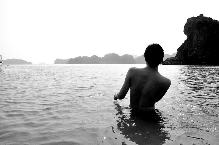 Das gemietete Boot war schön, das Wetter unerwartet ideal und eh ich mich versah, war ich raus aus dem lauten, wilden und unvorhersehbaren Hanoi, mitten auf dem Meer, auf dem Sonnendeck, umgeben von salziger Luft, Ruhe und dem Blick auf dem Horizont, der bekanntlich jedes Mal meinen Kopf aufräumt und alles lichtet, was sich so vorher angestaut hatte.