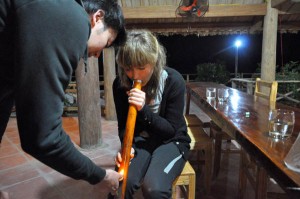 Irgendwann kamen zwei vietnamesische Frauen aus der Truppe zu uns. Eine kam mit Jeremy intensiver ins Gespräch und er übersetzte fleißig. Als die Zeit und der Wein dahinflossen, bot sie uns irgendwann an, „uns etwas mit auf unseren Lebensweg“ zu geben. Wie bei den Vietnamesen weit verbreitet, glaubt sie an das Händelesen, an Zeichen und sagt von sich, dass sie Menschen deuten kann, sobald sie Handkontakt mit ihnen hat.
