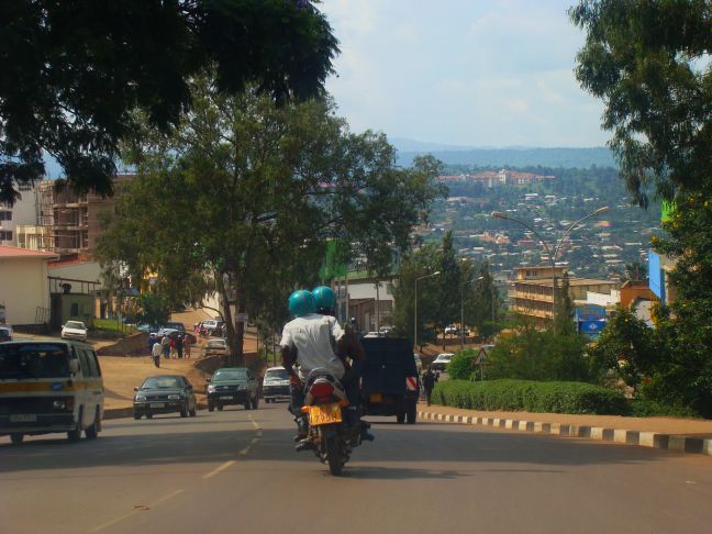 „Die schönste Art, Kigali zu sehen, ist auf dem Beifahrersitz eines Mopedtaxis. Tausende, wahrscheinlich Zehntausende düsen durch die Stadt und für ein paar Hundert ruandische Franc, meist nicht mehr als einen Euro, kann man von Hügel zu Hügel fahren […] mit Herzrasen durch den Feierabendverkehr, zwischen Autos und Lastwagen gequetscht, ein Flehen um heiles Ankommen auf den Lippen.“