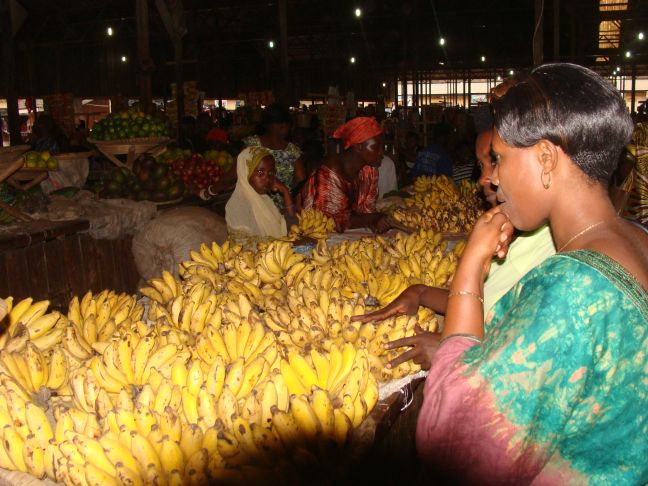 Beim Einkauf zeigt sich schnell, wie afrikanisch man schon ist… Das beginnt bei der Auswahl der Einkaufsstätte… Hat man Platzangst oder ist in Eile, will man seine Ruhe haben und feilschfrei einkaufen , kann man in einen der überteuerten Supermärkte der Innenstadt gehen… pro Apfel zahlt man dann schon mal 50 Cent. Der Anblick vieler Weißhäuter dort darf einen bitte nicht stören… Auch nicht das Geläster der Kassierer/innen..oder die westliche Popmusik aus den Lautsprechern.. Auch nicht das eigene schlechte Gewissen.. (wenn man am Ausgang auf unterernährte Kinder trifft…)