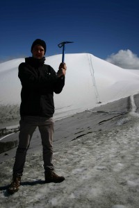 Naja, ich sagte nicht „nein“ und so machten Juan Pablo, Sergio und ich uns, mit GPS und Kompass ausgestattet, auf den Weg. Es ging in Zick-Zack-Linien und hintereinander laufend empor. Immer mal wieder wechselten wir unsere Positionen. Aber es war anstrengend – Die Sonne brannte und wurde vom Schnee sehr stark reflektiert (ohne Sonnenbrille wäre man gestorben ;)), man fing an zu schwitzen, während es an den Füßen langsam aber sicher kalt wurde. Dennoch war es ein tolles Erlebnis; nicht zuletzt weil wir mit sehr schönen Ausblicken belohnt wurden.