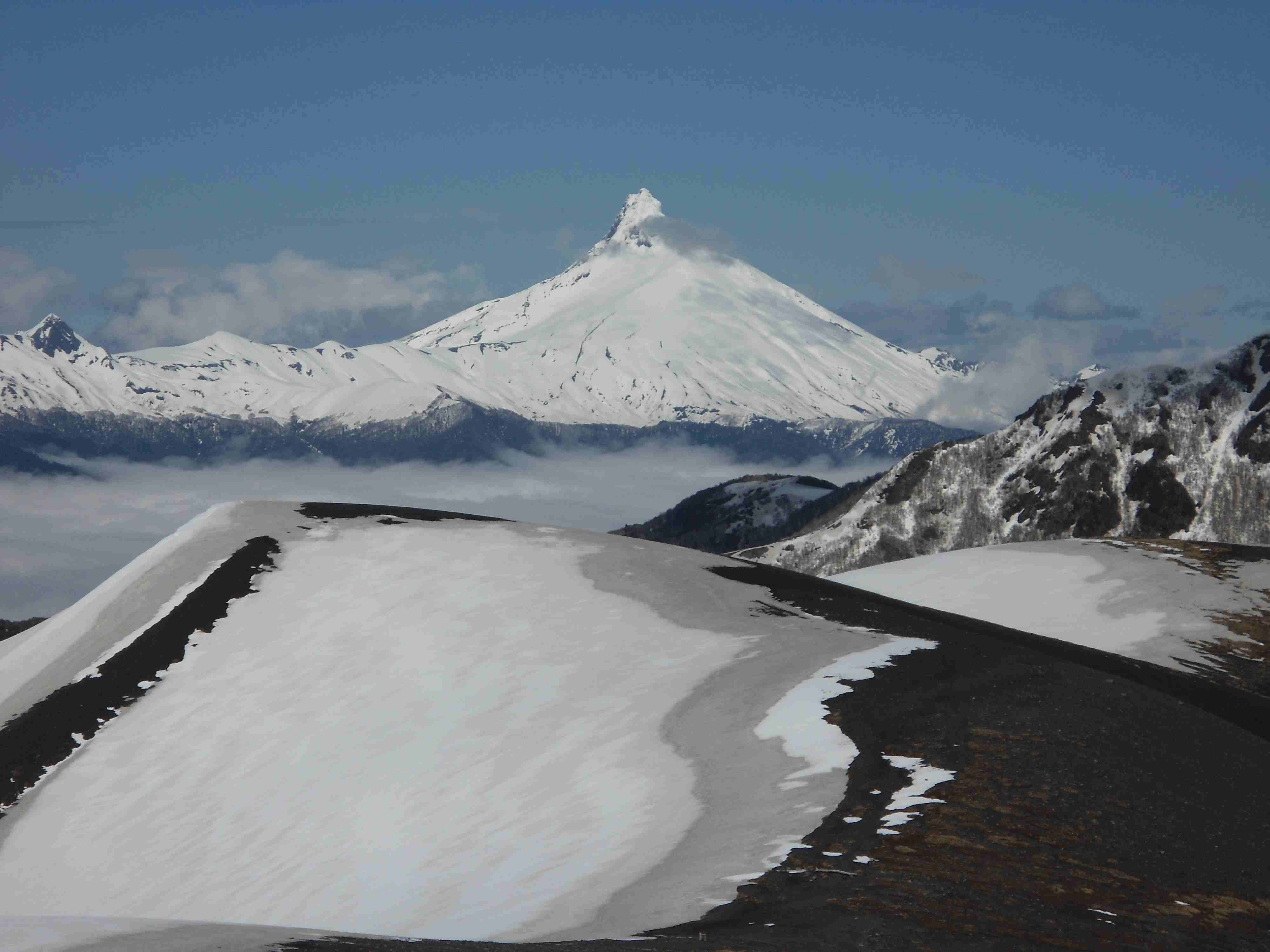 Naja, ich sagte nicht „nein“ und so machten Juan Pablo, Sergio und ich uns, mit GPS und Kompass ausgestattet, auf den Weg. Es ging in Zick-Zack-Linien und hintereinander laufend empor. Immer mal wieder wechselten wir unsere Positionen. Aber es war anstrengend – Die Sonne brannte und wurde vom Schnee sehr stark reflektiert (ohne Sonnenbrille wäre man gestorben ;)), man fing an zu schwitzen, während es an den Füßen langsam aber sicher kalt wurde. Dennoch war es ein tolles Erlebnis; nicht zuletzt weil wir mit sehr schönen Ausblicken belohnt wurden.