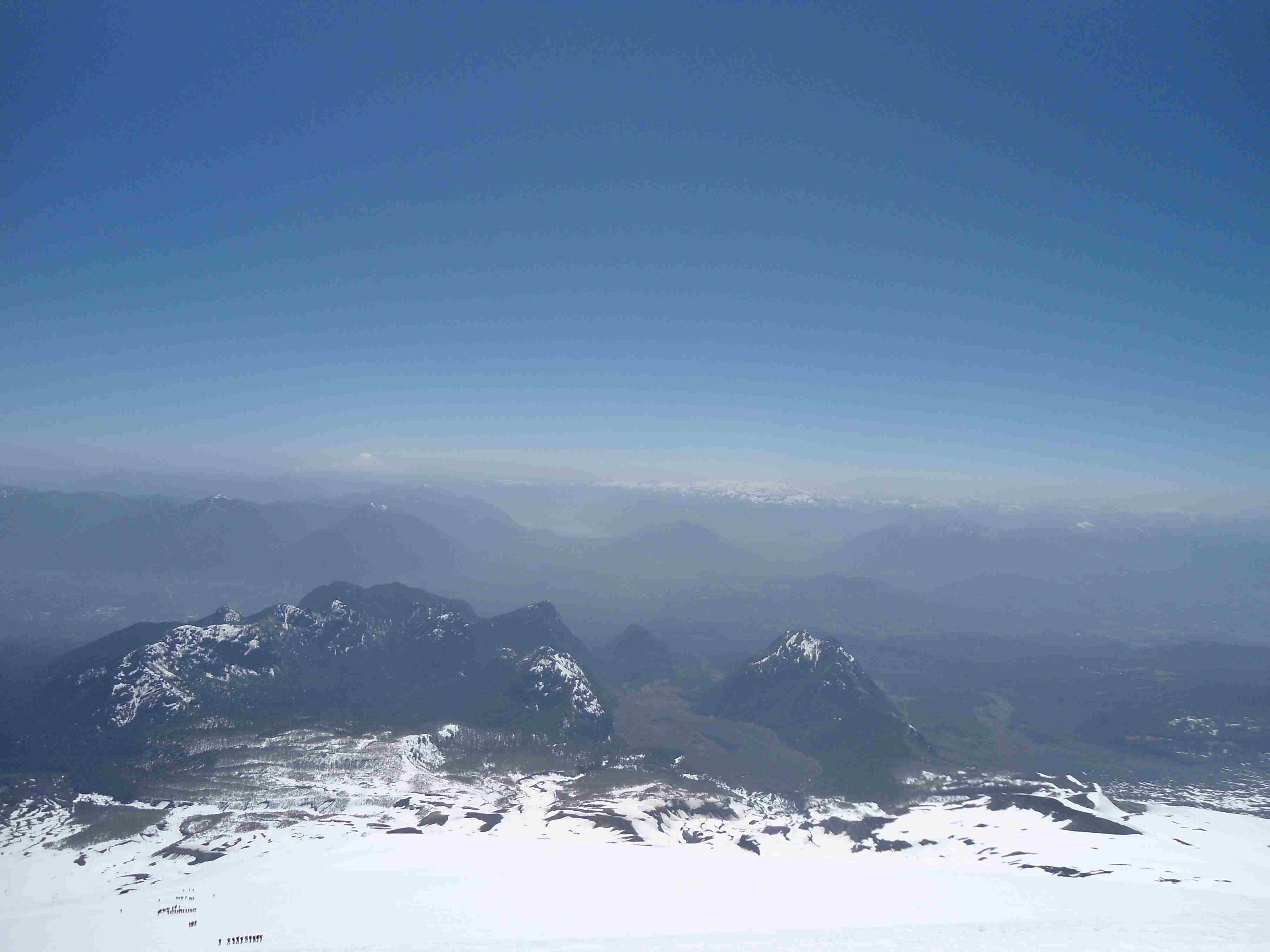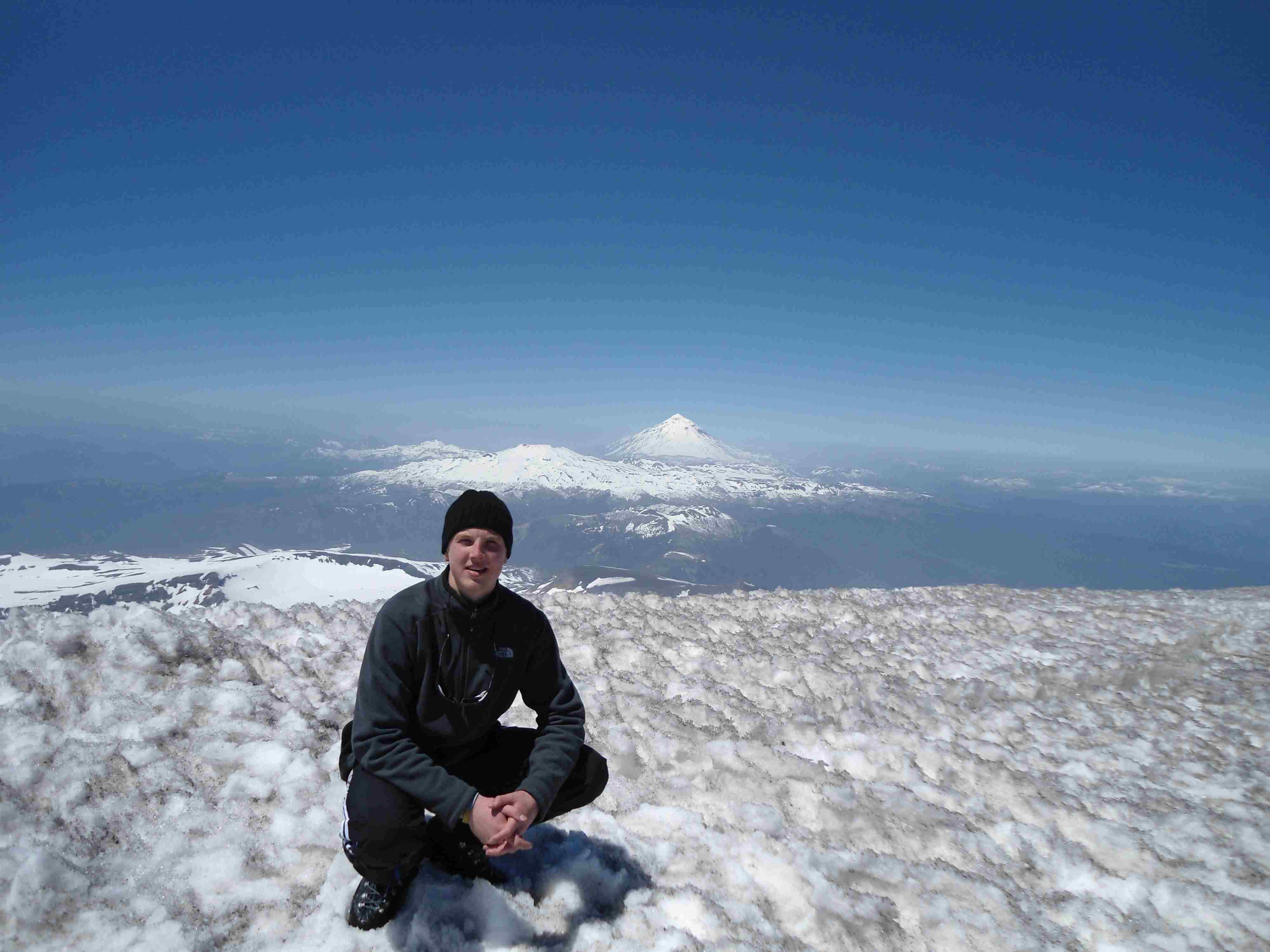 Leider werden die Dimensionen auf den Bildern wie immer nicht deutlich. Aber es war enorm. Für den Aufstieg brauchten wir mit 6 – 7 kleinen Pausen von 5 – 15 Min. ca. 6 Stunden. Die brennende Sonne, deren Sonnenstrahlen durch den Schnee überallhin reflektiert wurden, teilweise bis zu 50 cm Tiefschnee und Steigungen von geschätzten 50° machten den Trip zu einem kräftezehrenden Unterfangen für Laien. Einem wird klar, was für eine Herausforderung es für Bergsteiger sein und wie viel es ihnen abverlangen muss 6000er oder gar 8000er Gipfel zu erklimmen (Zum Vergleich: Der Villarrica ist „nur“ 2840 m hoch).