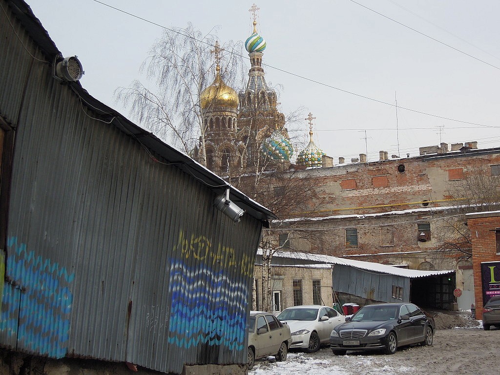 Einmal habe ich es dann aber doch in die Stadt geschafft, in Begleitung von Mina, einer äußerst freudigen Koreanerin. Zusammen haben wir auf dem Weg zur Blut-Kirche und der Eremitage zahlreiche Innenhöfe durchstöbert, und dabei teils erstaunliche Entdeckungen gemacht. Hinter den Eingangstoren zwischen den Häusern verbergen sich oft verblüffend große Freiflächen, komplett umgeben von Häusern. Oft sind diese sogar noch mit weiteren Innenhöfen verbunden, die man von der Straße niemals vermutet hätte, und die auf keiner Karte eingezeichnet sind. Mal finden sich in ihnen Geschäfte und Büros, vielfach Bars, Cafés und Clubs, manchmal auch nur das wahre Gesicht der Großstadt, nämlich Eingänge zu den vielen Wohnhäusern, deren Dimensionen hinter den Fassaden auf den Straßen absolut nicht ersichtlich sind. Dazu kommen typisch Russische Spielplätze, mit vielen bunten Eisenkonstrukten zum Klettern und Spielen. Es ist dort oft so ruhig, dass man fast vergisst, im Zentrum der 5-Millionen-Metropole unterwegs zu sein. Es wirkt russischer als St. Petersburg. Ein gewisses Etwas von Abenteuer ist auch dabei.