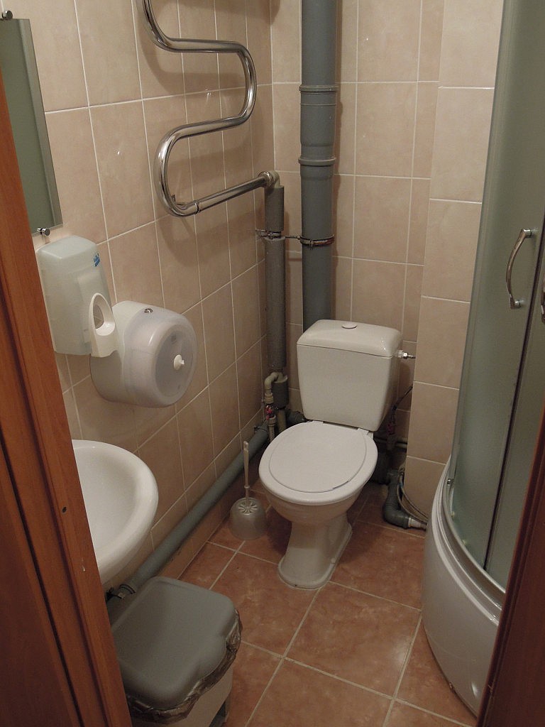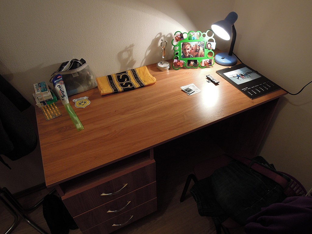 Wie die Bilder schon zeigen, besteht jedes Zimmer in meinem Wohnheim aus einem Schlafraum mit Bett, Schränken und Schreibtisch sowie einem eigenen Bad mit Toilette und Dusche. Diesen Luxus genießen die Studenten im alten Wohnheim mit Bädern auf dem Gang nicht.