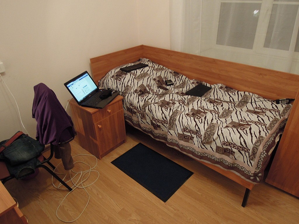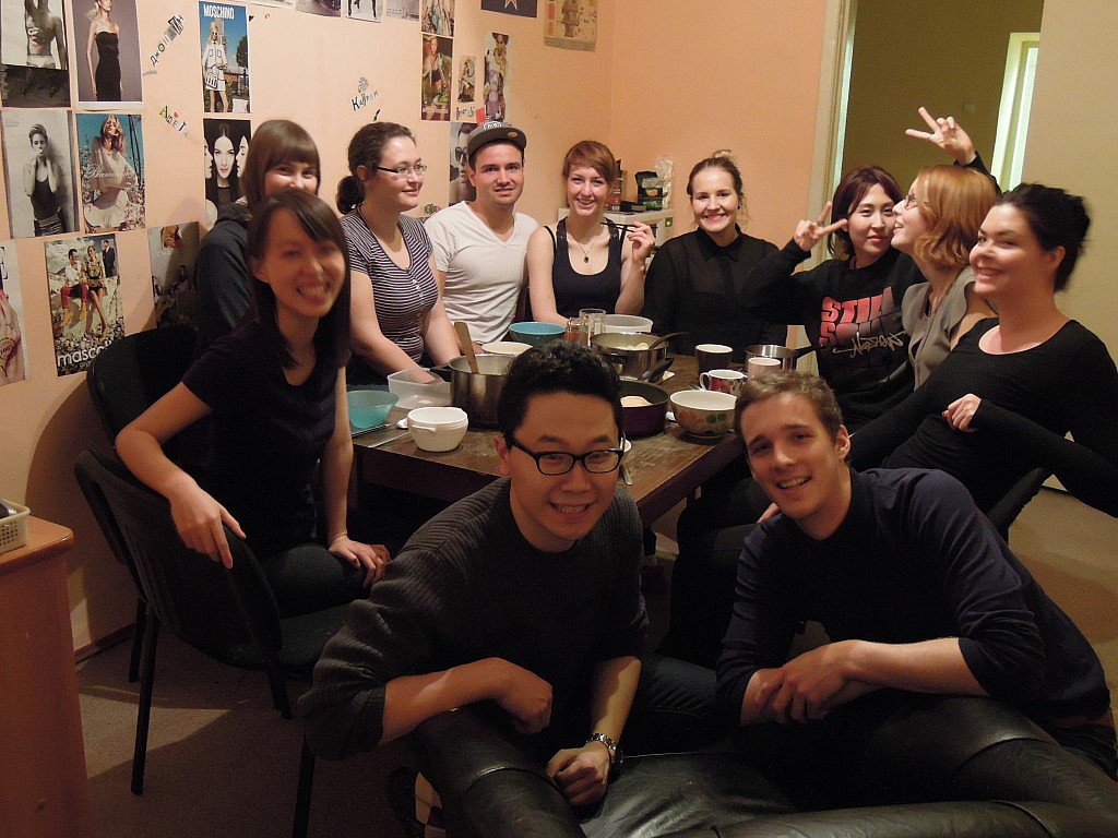 Ich wohne in einem im vergangenen November fertiggestellten Wohnheim in der 1. Etage (welche in Russland allerdings als 2. Etage bezeichnet wird) auf einem Flur mit mittlerweile etwa 10 weiteren Austauschstudenten. Ein Großteil aller Studenten kommt aus Finnland, Frankreich und Deutschland. Es gibt allerdings auch Ungaren, Tschechen, Südkoreaner, Italiener und einige Vertreter anderer Nationen, im Gegensatz zu Russen.