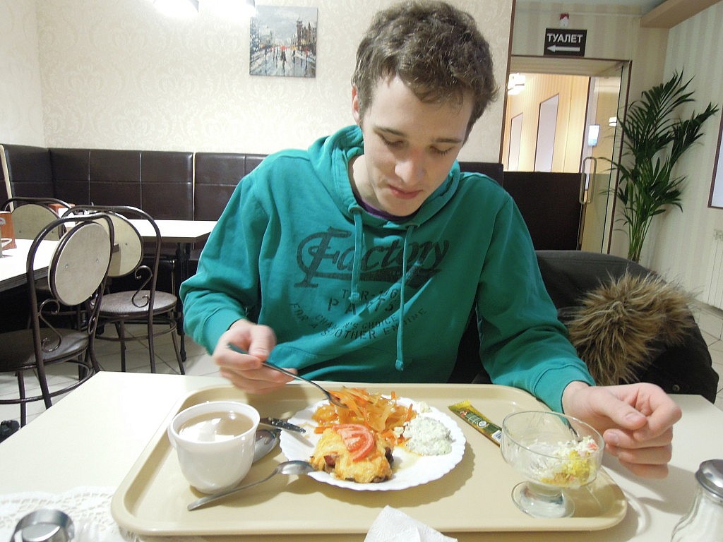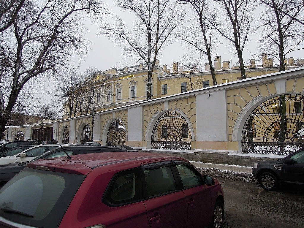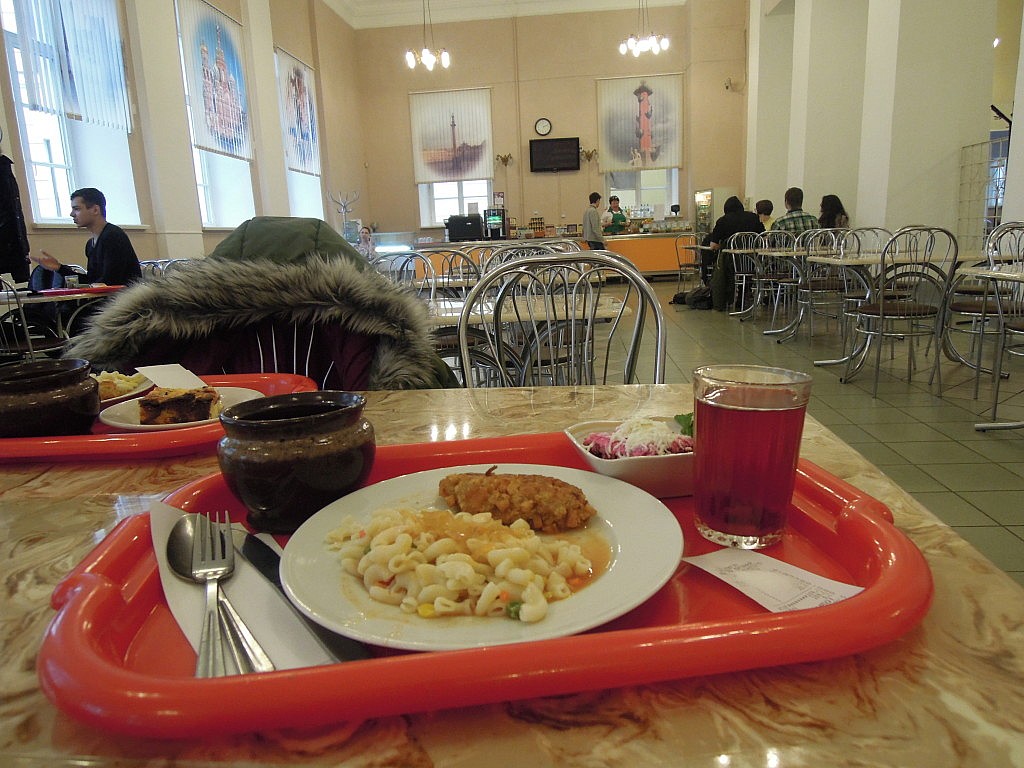 Ich bin also am 03. Februar in St. Petersburg, Flughafen Pulkovo, gelandet. Dort wurde ich von einer Tutorien (selber auch Studentin), welche sich um ankommende Studenten kümmert, erwartet und mit einigen anderen Deutschen zum Unigelände gebracht. So gab es im Taxi bereits Gelegenheit sich kennenzulernen. Es ist ja doch nett, auch entgegen seiner Vorsätze, sich durch deutsch und deutsche Gewohnheiten etwas heimischer zu fühlen. Es macht vieles einfacher. Nach kurzer Einführung erhielten wir mit dem Ausfüllen eines Formulars unsere Zimmerschlüssel. Mir wurde zwar zunächst ein Doppelzimmer zugeteilt, dieses wurde aber umgehend gegen ein Einzelzimmer getauscht, da ich dies auch so angegeben hatte. Weiter ging es gleich, weiterhin in Begleitung der Tutorin, in ein günstiges Russisches Restaurant zum Abendessen und zu einem Supermarkt. So waren bereits einige Anlaufpunkte bekannt, die Zeit in St. Petersburg konnte also beginnen.