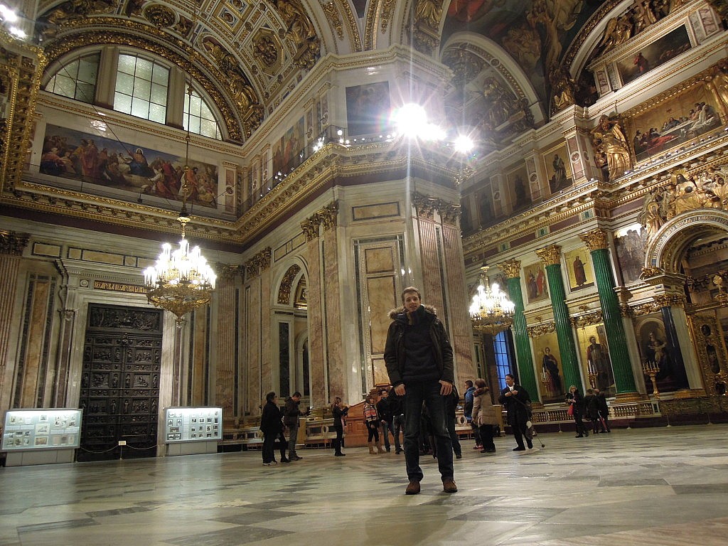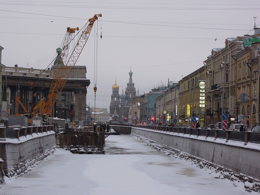 Einmal habe ich es dann aber doch in die Stadt geschafft, in Begleitung von Mina, einer äußerst freudigen Koreanerin. Zusammen haben wir auf dem Weg zur Blut-Kirche und der Eremitage zahlreiche Innenhöfe durchstöbert, und dabei teils erstaunliche Entdeckungen gemacht. Hinter den Eingangstoren zwischen den Häusern verbergen sich oft verblüffend große Freiflächen, komplett umgeben von Häusern. Oft sind diese sogar noch mit weiteren Innenhöfen verbunden, die man von der Straße niemals vermutet hätte, und die auf keiner Karte eingezeichnet sind. Mal finden sich in ihnen Geschäfte und Büros, vielfach Bars, Cafés und Clubs, manchmal auch nur das wahre Gesicht der Großstadt, nämlich Eingänge zu den vielen Wohnhäusern, deren Dimensionen hinter den Fassaden auf den Straßen absolut nicht ersichtlich sind. Dazu kommen typisch Russische Spielplätze, mit vielen bunten Eisenkonstrukten zum Klettern und Spielen. Es ist dort oft so ruhig, dass man fast vergisst, im Zentrum der 5-Millionen-Metropole unterwegs zu sein. Es wirkt russischer als St. Petersburg. Ein gewisses Etwas von Abenteuer ist auch dabei.