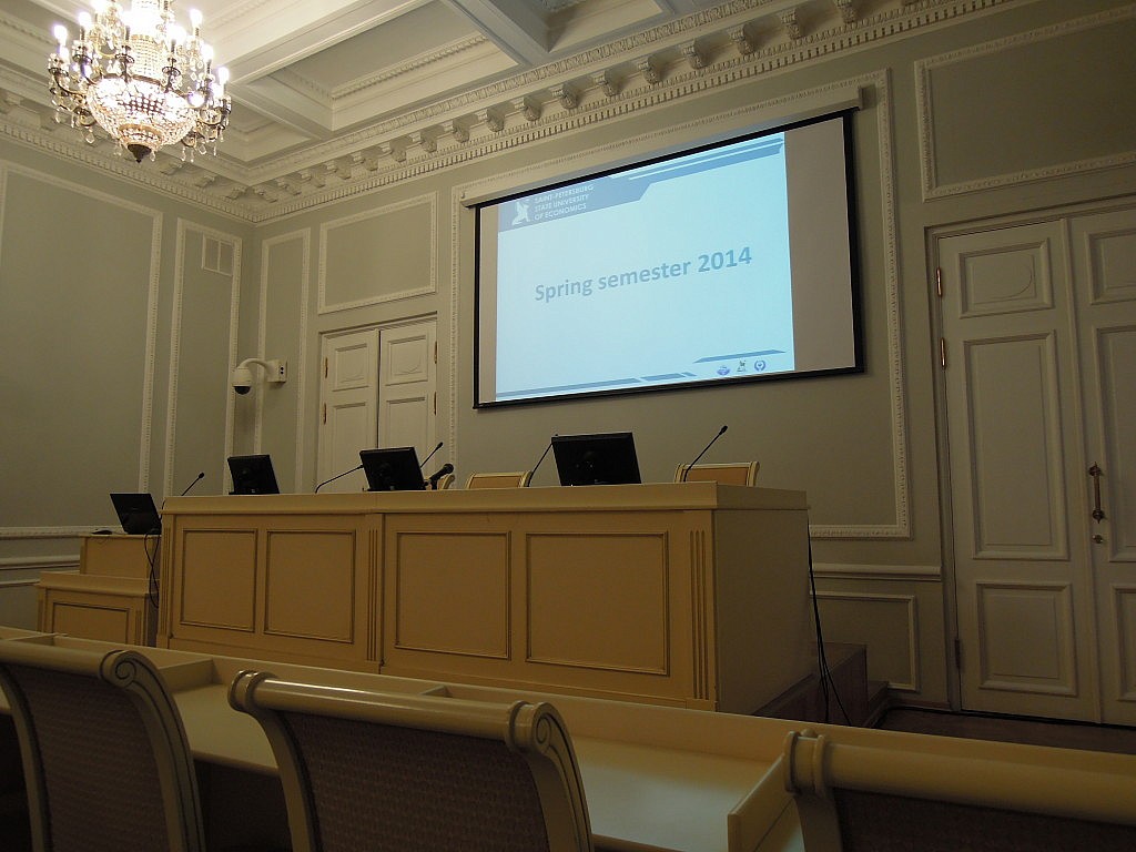 So wusste ich was ich zu tun hatte, als ich mir sicher war, nach St. Petersburg gehen zu wollen. Als kurze Einleitung bietet sich aber zunächst ein weiterer Rückblick an. Denn von der Finec habe ich schon sehr früh erfahren. Im Rahmen der „Russland Tage“ 2012, während derer Partnerhochschulen, Kultur und Kost der Russischen Föderation zur Schau gestellt wurden, sollte auch diese Universität an einem der Stände im Hochschulfoyer vorgestellt werden. Ich hatte mich freiwillig gemeldet mitzuhelfen und bekam, nach Tausch der ursprünglich für mich geplanten Lehrstätte, die Finec in St. Petersburg zugeteilt. Ich hatte noch nie davon gehört. Damals, in meinem 2. Semester, bin ich bei der Erstellung des Info-Plakats zum ersten Mal in Kontakt gekommen mit der Universität, an welcher ich bald studieren werde. Insgeheim war ich begeistert, allerdings ohne den Gedanken an das noch allzu weit entfernte Auslandssemester. Auch hier stellte ich die Schritte zur Bewerbung zusammen, für interessierte Studenten.
