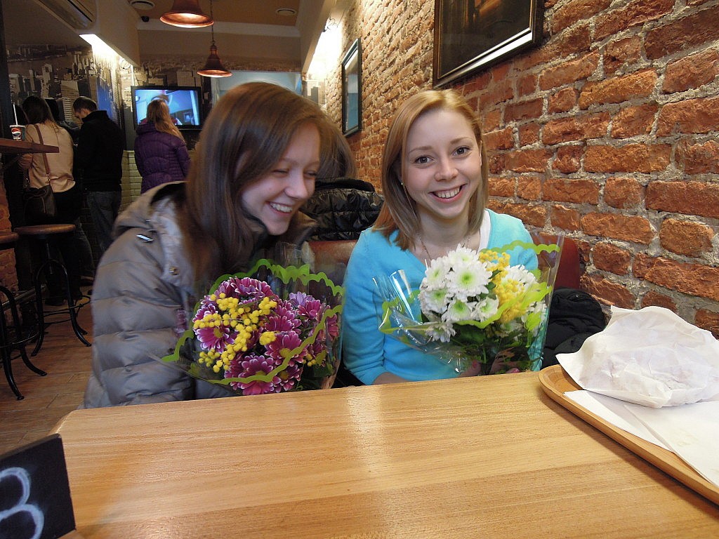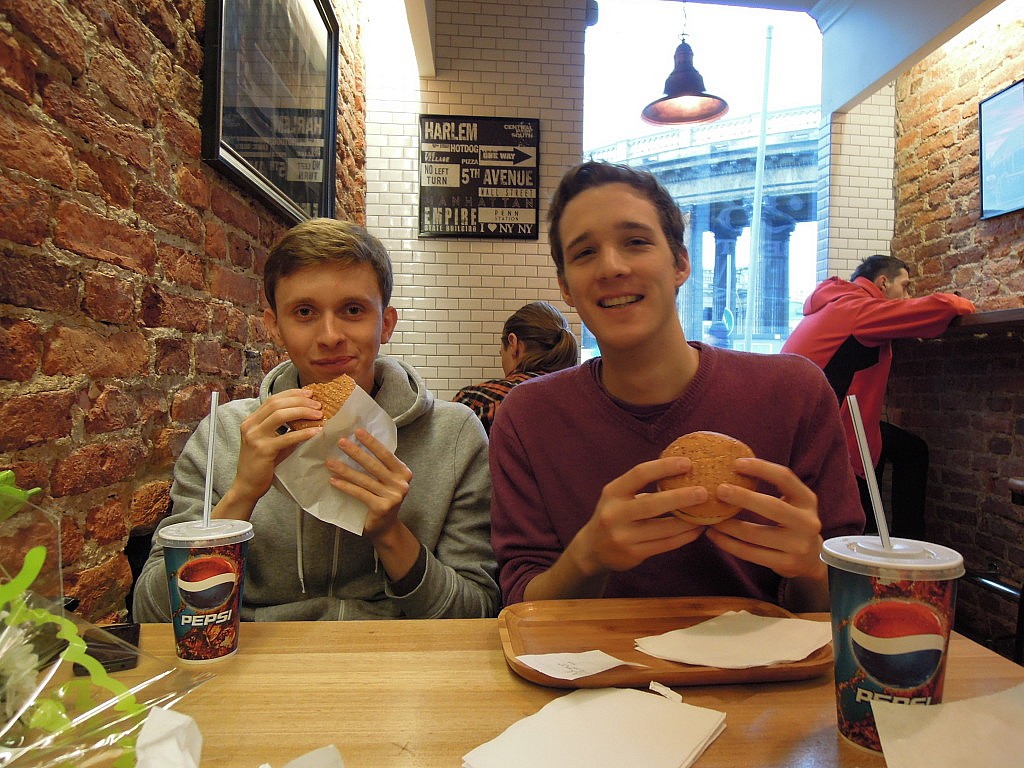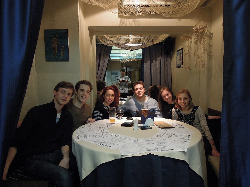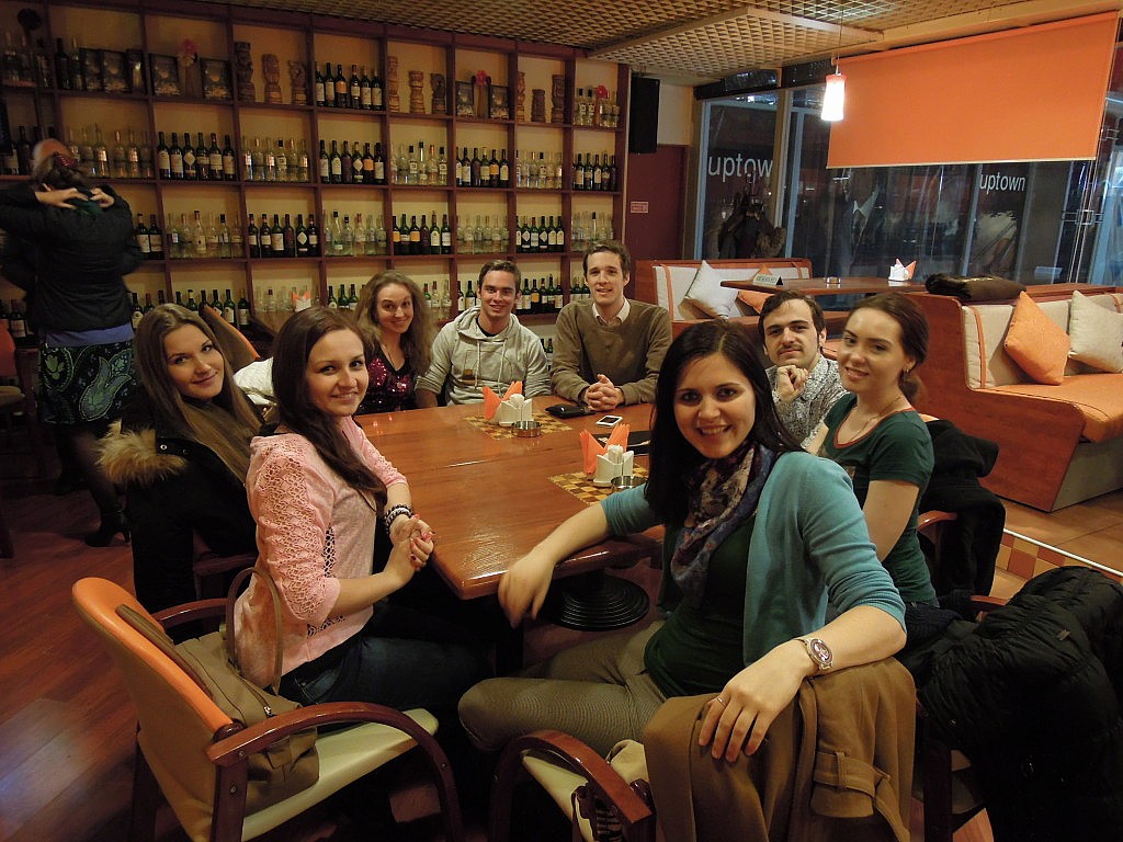 Gleich am Ankunftsabend, nachdem wir im Supermarkt fertig waren, traf ich mich mit einem guten Freund, den ich seit seinen beiden Auslandssemestern in Heilbronn kenne: Roma. Nachdem ich ihn auf etlichen Umwegen und Hilfe einer Gruppe St. Petersburger in einer verabredeten Metrostation gefunden hatten, fuhren wir mit seiner Freundin Polina zur Geburtstagsfeier einer gemeinsamen Freundin, Mascha, die aus St. Petersburg kommt, und nun in Heilbronn studiert. In einem Café „Shokoladniza“ auf dem „Nevski Prospekt“ wartete die Gesellschaft gegen 23:30h auf uns, war aber noch hellwach. So hatte ich nach Aufbruch aus Mülheim gegen 7:45h Russischer Zeit also am selben Tag schon das Glück, einen authentischen Blick auf das Leben in St. Petersburg  werfen zu können. So wie es ist, wenn man dort immer wohnt. Und das ist mir wichtig. Ich will wissen, wie dieses Land, diese Stadt, und das Leben dort wirklich ist. Auch wenn ich schon vorher wusste, dass es nicht daraus besteht, jeden Abend in internationalen Gruppen Feiern zu gehen.
