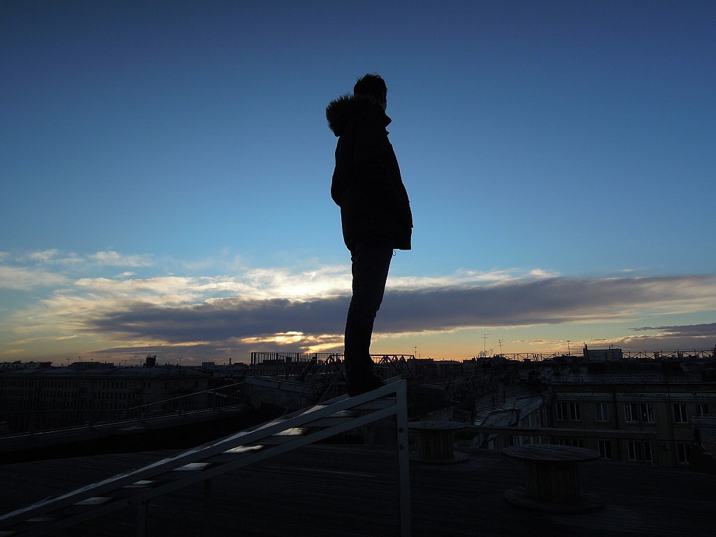 Diese Fotos sind auf dem Dach eines alternativen, kunstbetonten Mehrzweckhauses, namens „Loft Project ETAGI“ enstanden. An diesem Tag gab es dort im Innenhof einen „Freedom Market“, auf welchem viel handgemachtes, bestimmt öko- und biologisches sowie Kunst verkauft wurde. Im inneren fanden wir auf vier oder fünf Etagen Kunstgallerien, flohmarktähnliche Stände an welchen die herrlicheste alltagstaugliche Kunst angeboten wurde, ein Hostel, Cafés, dies und das und ganz oben, zu meiner besonderen Freude, ein begehbares Dach. Als Liebhaber jeglicher Aussichtspunkte war mir klar dass sich zum Sonnenuntergang der Aufstiegspreis lohnen würde. Eine gute Entscheidung: